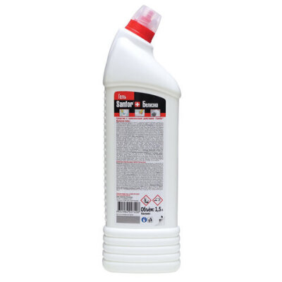 Средство для отбеливания и чистки тканей SANFOR "Белизна" 3 в 1 для отбеливания и удаления пятен при стирке, а также для дезинфекции и чистки сантехники и труб.