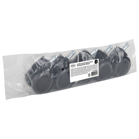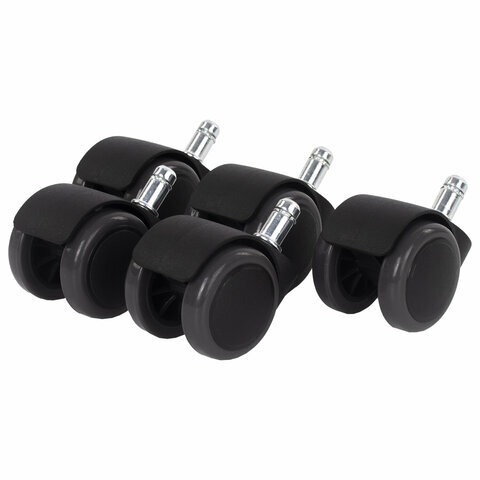 Колеса (ролики) для кресла, прорезиненные, КОМПЛЕКТ 5 шт., шток d 11 мм, черные, в пакете, WBZ (ВБЗ), 533083