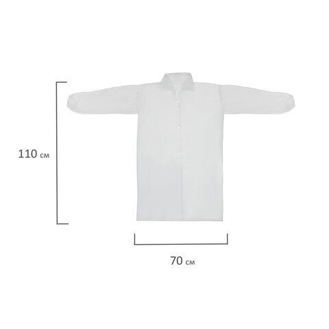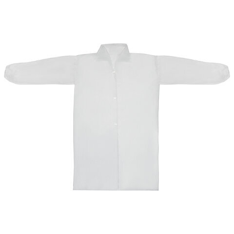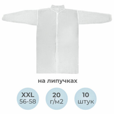 Халат одноразовый белый на липучках КОМПЛЕКТ 10 шт., XXL, 56-58 размер, 110 см, рукав на резинке, 20 г/м2, СНАБЛАЙН