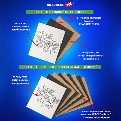 Копировальная бумага BRAUBERG ART "CLASSIC" предназначена для письма вручную, хобби и творчества.