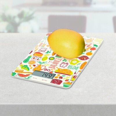 Весы кухонные BQ (БИ-КЬЮ) KS1010, электронный дисплей, max вес 5 кг, тарокомпенсация, закаленное стекло, с рисунком, 86191803