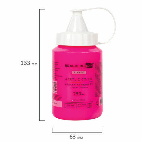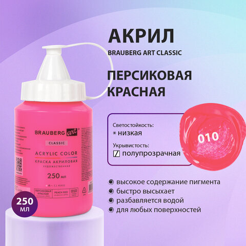 Краска акриловая художественная BRAUBERG ART CLASSIC, флакон 250 мл, ПЕРСИКОВАЯ КРАСНАЯ, 191712