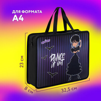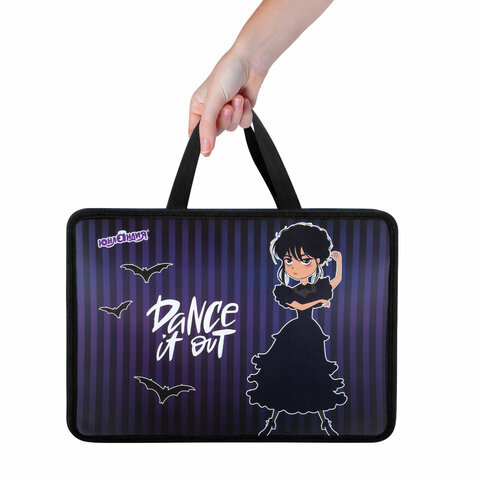 Папка на молнии с ручками ЮНЛАНДИЯ А4, 1 отделение, пластик, 80 мм, "Dancing", 272152