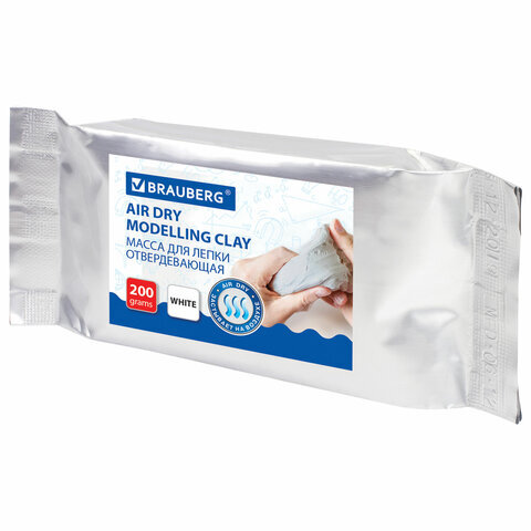 Паста (масса) для лепки BRAUBERG, самозатвердевающая, 200 г, натуральный белый, ВЫСШЕЕ КАЧЕСТВО, 224441