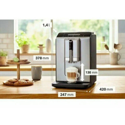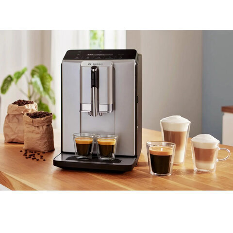Кофемашина BOSCH TIE20301, 1300 Вт, объем 1,4 л, автокапучинатор, серебристая/черная