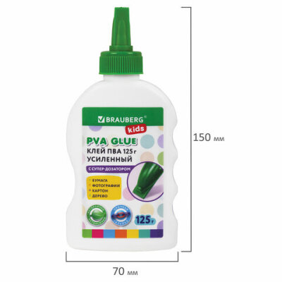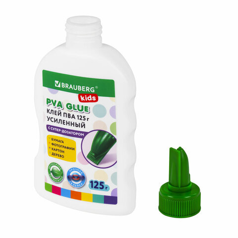 Клей ПВА, усиленный, BRAUBERG KIDS с супер-дозатором (для школы, хобби и творчества), 125 г, 271937