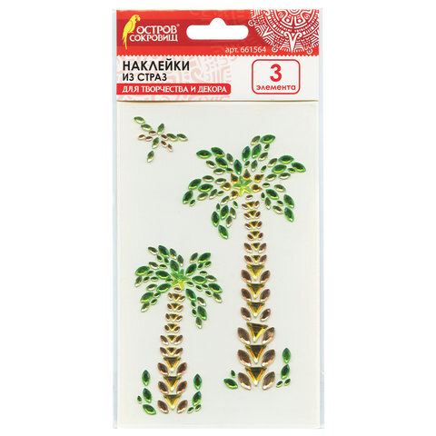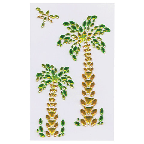 Наклейки готовые из страз ПАЛЬМЫ, 3 декоративных элемента, 9,5 х 15,5 см, ОСТРОВ СОКРОВИЩ, 661564