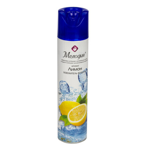 Освежитель воздуха МЕЛОДИЯ "Лимон" быстро и эффективно устраняет неприятные запахи и освежает воздух в жилых и бытовых помещениях. Имеет приятный стойкий аромат, который надолго наполнит помещение свежестью.