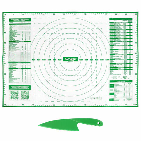 Коврик силиконовый для раскатки/запекания 46х66 см, зеленый, ПОДАРОК пластиковый нож, DASWERK (ДАСВЕРК), 608428