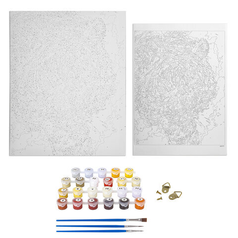 | Комплектация | акриловые краски, кисть, крепеж, лист бумаги для тренировки, холст на подрамнике |