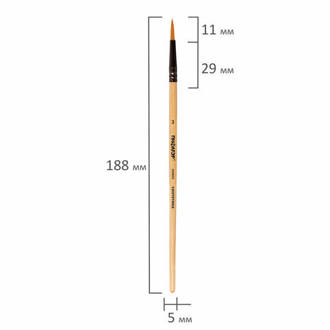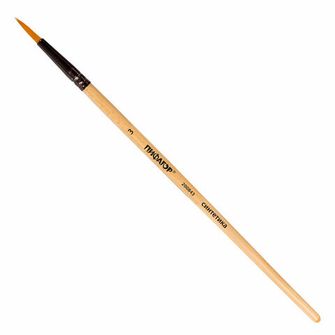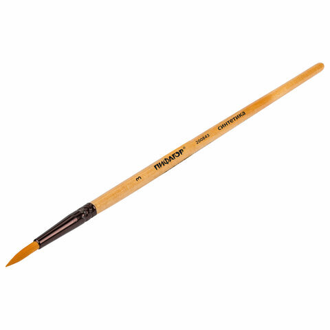 Кисть ПИФАГОР, СИНТЕТИКА, круглая, № 3, деревянная лакированная ручка, с колпачком, 200843
