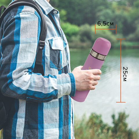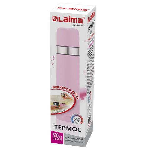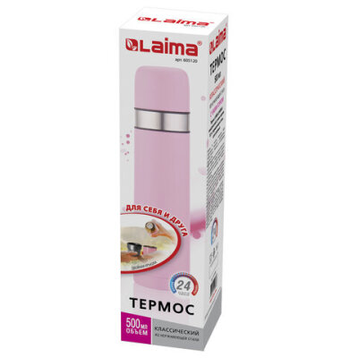 Термос LAIMA классический с узким горлом (2 чашки) 0,5 л, нержавеющая сталь, розовый, 605120