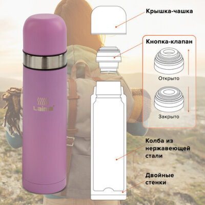 Классический термос LAIMA предназначен для хранения горячих и холодных напитков.