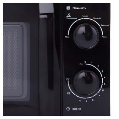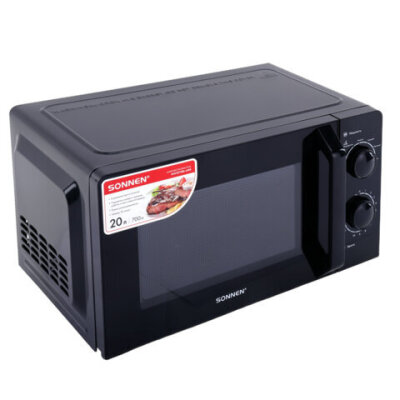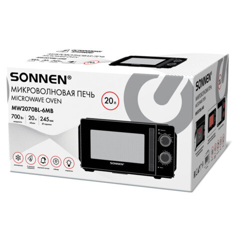 Микроволновая печь SONNEN MW2070BL-6MB, 20 л, 700 Вт, таймер, механическое управление, ручка, черная, 454983