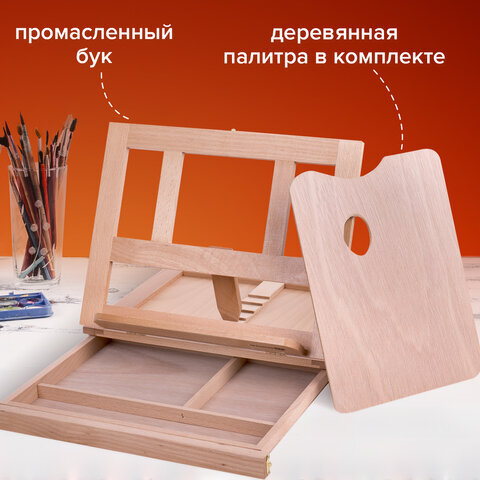 Мольберт настольный из бука с выдвижным ящиком, 34,5х26х27 см, холст до 30 см, BRAUBERG ART, 192247