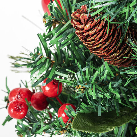 Ель искусственная декоративная 30 см, ПВХ, сосновые иголки, шишки, ягоды, ЗОЛОТАЯ СКАЗКА, 591327