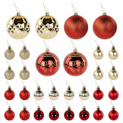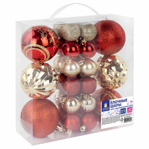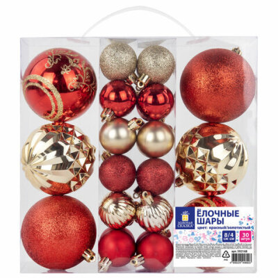 Шары ёлочные НАБОР 30 шт., 8 см/4 см, "Red&Gold", пластик, красные/золото, ЗОЛОТАЯ СКАЗКА, 592168
