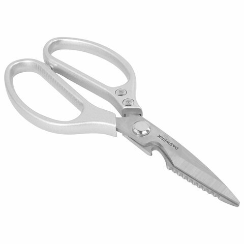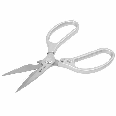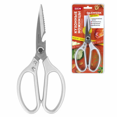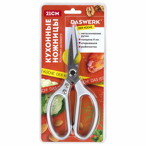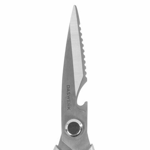 Ножницы кухонные DASWERK (ДАСВЕРК), 210 мм, с открывашкой, зазубренные, металлические ручки, 608901