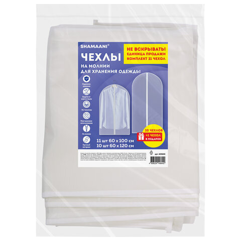 Чехлы для хранения одежды на молнии, КОМПЛЕКТ 20 шт. + 1 в подарок, SHAMAANI (ШАМААНИ), 609600