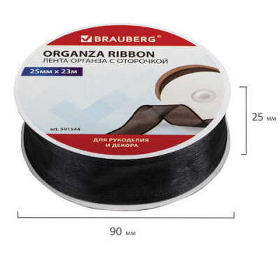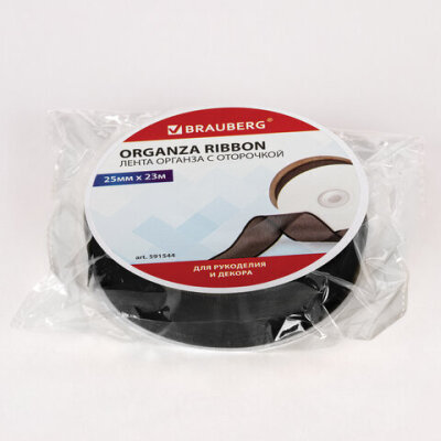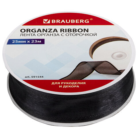 Лента органза с оторочкой ширина 25 мм, длина 23 м, черная, BRAUBERG, 591544