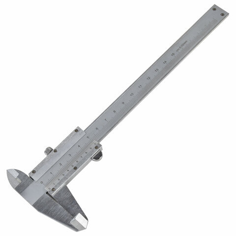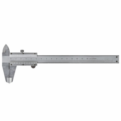Металлический штангенциркуль с глубиномером, со шкалой 150 мм, со значением отсчета по нониусу 0,02 мм используется для быстрого определения размеров внутри и снаружи деталей, а также глубин отверстий и канавок — для этого предусмотрен глубиномер.
