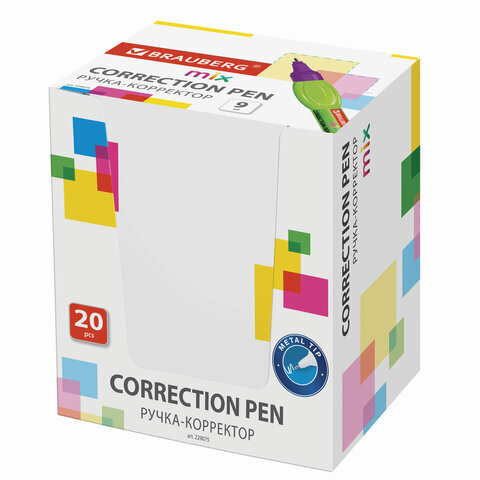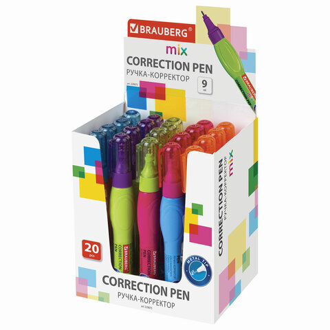 Ручка-корректор BRAUBERG MIX, 9 мл, металлический наконечник, ассорти, 229075