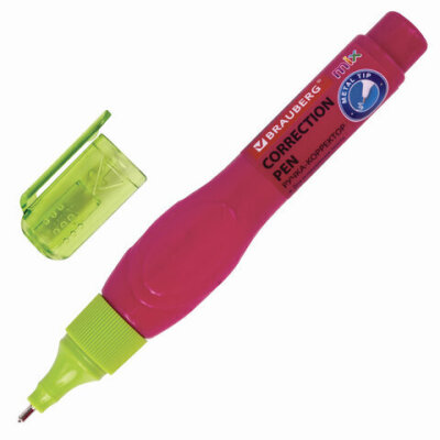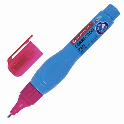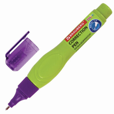 Ручка-корректор BRAUBERG MIX для наиболее аккуратного и точного исправления печатного и рукописного текста. Надежный металлический наконечник обеспечивает экономичный расход корректирующей жидкости.