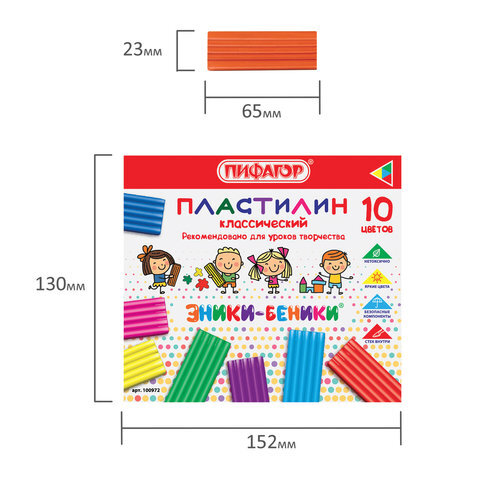 Пластилин классический ПИФАГОР "ЭНИКИ-БЕНИКИ", 10 цветов, 200 г, со стеком, картонная упаковка, 100972