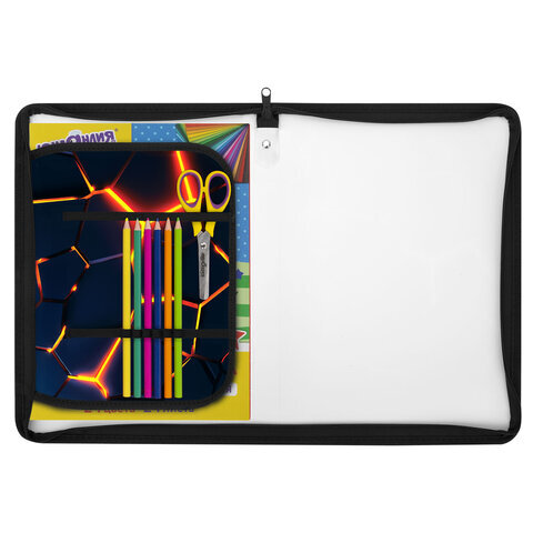 Папка для труда на молнии ЮНЛАНДИЯ А4, 1 отделение, откидная планка, органайзер, "Volcano split", 273394