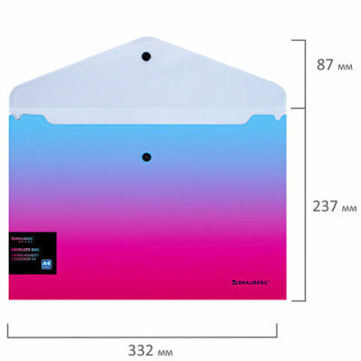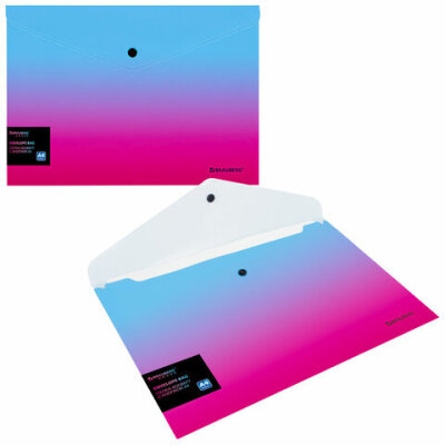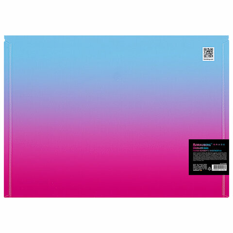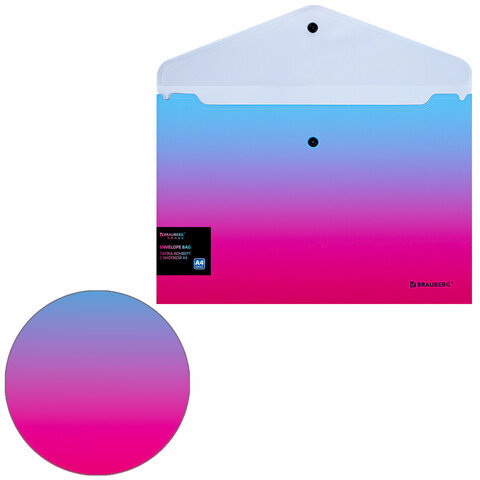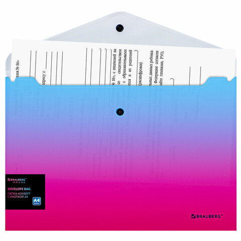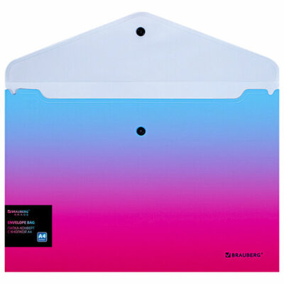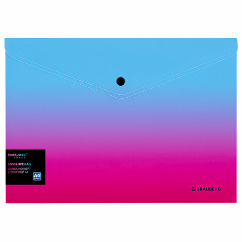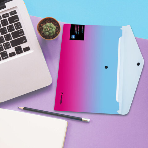 Папка-конверт с кнопкой BRAUBERG "Grade", А4, до 100 листов, розово-голубой градиент, 0,18 мм, 271963