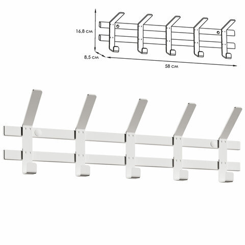 Вешалка настенная "Торонто-5", 168х580х85 мм, 5 крючков, металл, белая, ВНТ5 Б