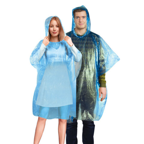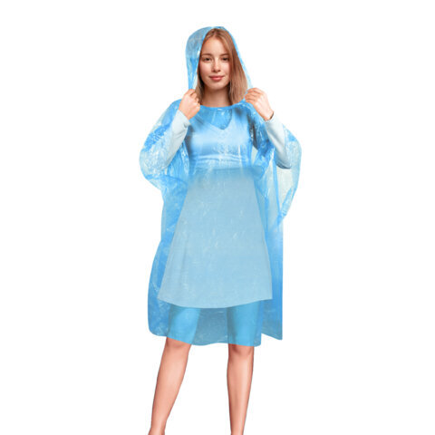 Дождевик-пончо синий полиэтиленовый, универсальный размер, SHAMAANI (ШАМААНИ), 610940