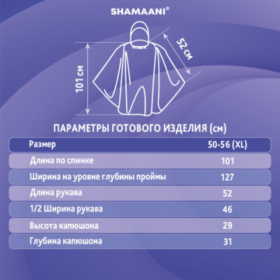 Дождевик-пончо SHAMAANI с капюшоном и укороченным рукавом предназначен для защиты от дождя и повышенной влажности воздуха. Идеально подойдет для работы на улице, отдыха на природе, рыбалки, пикника и городских прогулок.