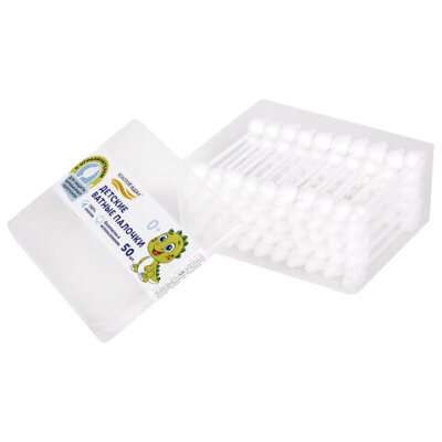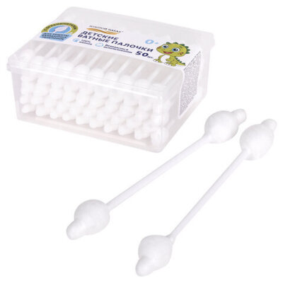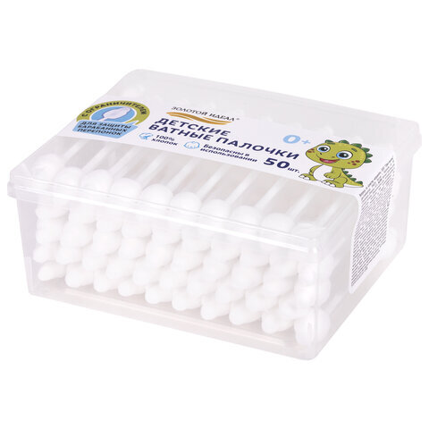 Ватные палочки детские 50 шт., с ограничителем, ЗОЛОТОЙ ИДЕАЛ, 100% хлопок, 116532