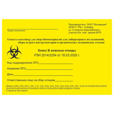 Упаковка для сбора и утилизации медицинских отходов