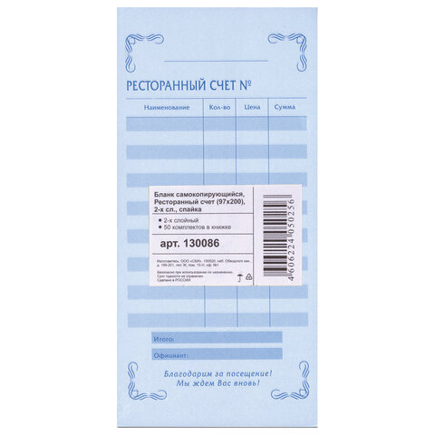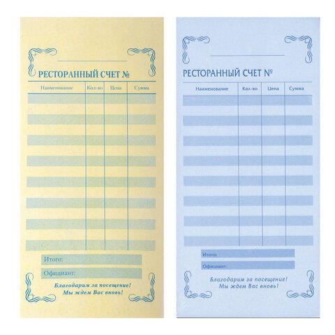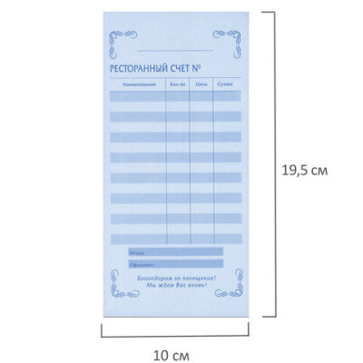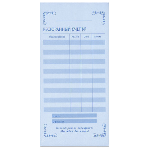 «АЛГОРИТМ»| Вид бланка | Ресторанный счет |