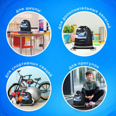 Мешок для обуви BRAUBERG KIDS "Dark car" – необходимый аксессуар в школе. Подходит для сменной обуви и физкультурной формы, вещей для факультативных занятий. Затягивается двумя шнурками. Можно носить на плечах за спиной.
