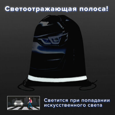 Мешок для обуви BRAUBERG KIDS, светоотражающая полоса, 46х36 см, "Dark car", 273439