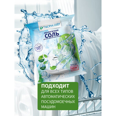 Соль для посудомоечных машин в гранулах 3 кг универсальная ТЫСЯЧА ОЗЕР
