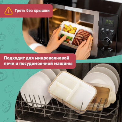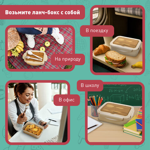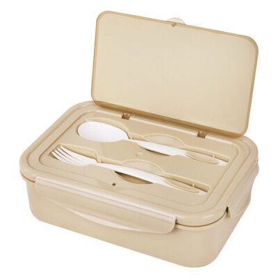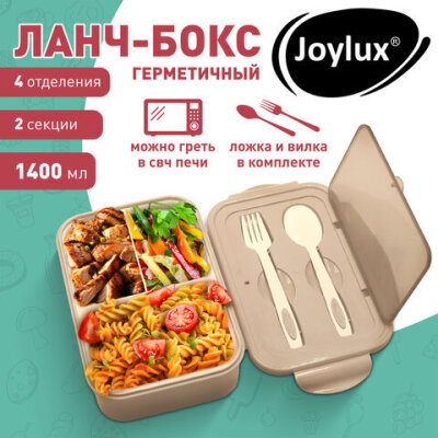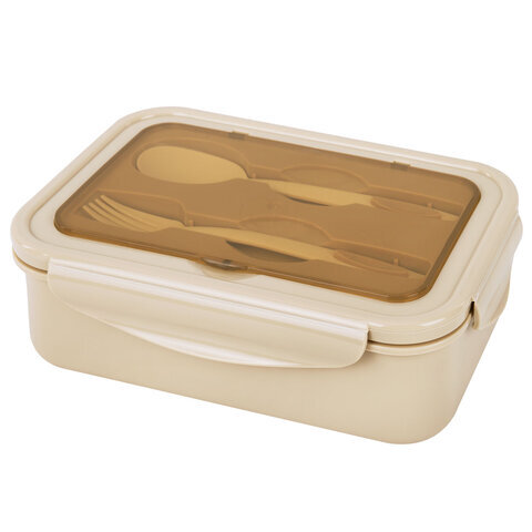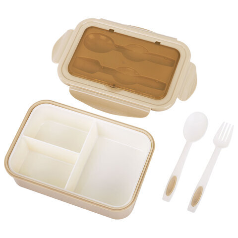 Ланч-бокс контейнер, 2 секции 3+1 отделение 1,4 л, ложка, вилка 7х21х14 см, бежевый, JOYLUX (ДЖОЙЛЮКС), 609349
