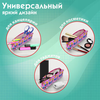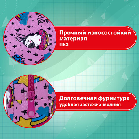 Пенал-косметичка ПИФАГОР, мягкий, "UNICORN", прямоугольный, 20х7х4 см, 229265