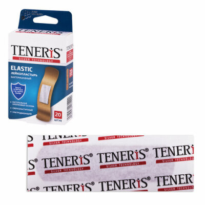 Набор пластырей 20 шт. TENERIS ELASTIC, эластичный, на тканевой основе, бактерицидный с ионами серебра, коробка с европодвесом, 0208-029