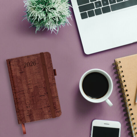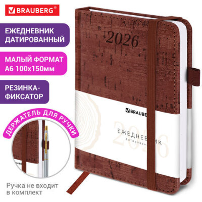 Ежедневник датированный 2026 МАЛЫЙ ФОРМАТ 100х150 мм, А6, BRAUBERG "Wood", под кожу, коричневый, 117263