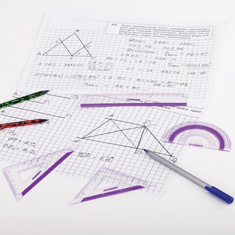 Комплектация большой треугольник, линейка, малый треугольник, транспортир