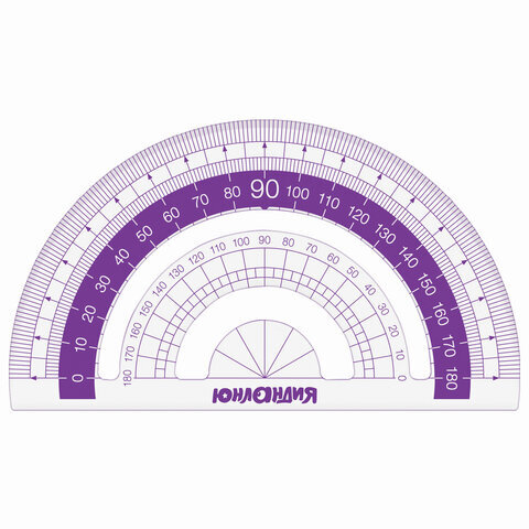 Набор чертежный малый ЮНЛАНДИЯ "ГЕОМЕТРИЯ" (линейка 15 см, 2 треугольника, транспортир), фиолетовая шкала, 210739