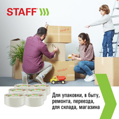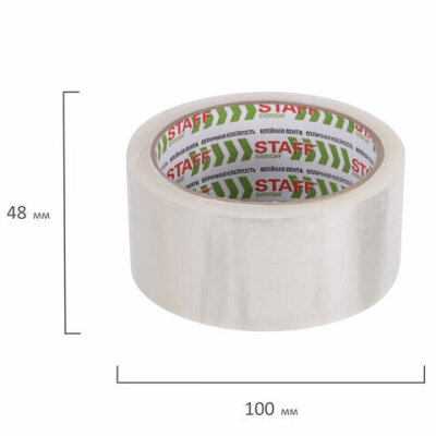 Упаковочная клейкая лента STAFF активно используется в торговле, промышленности, быту и подходит для оперативной упаковки с помощью диспенсера или вручную. Отличается высокой адгезией клея (слипанием с поверхностью) и стойкостью к разрыву.