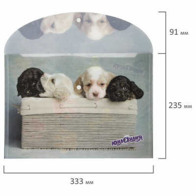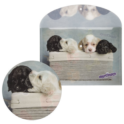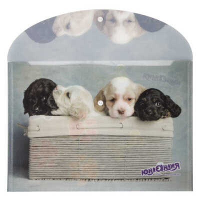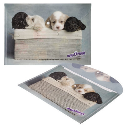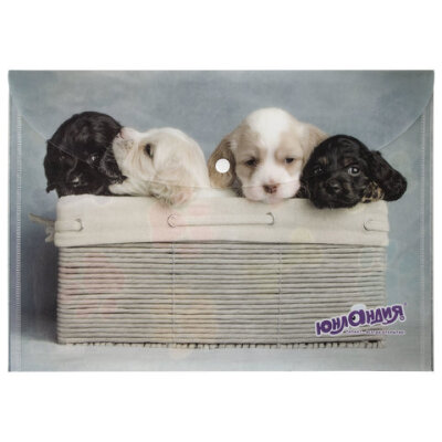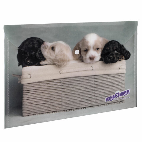 Папка-конверт с кнопкой ЮНЛАНДИЯ "Щенки", А4, 160 мкм, до 100 листов, цветная печать, 228050