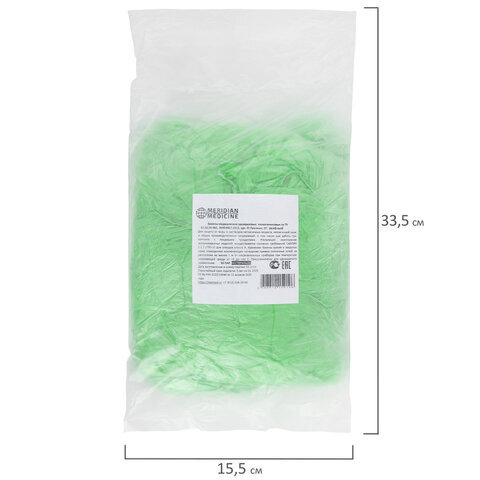 Бахилы MERIDIAN ПРОЧНЫЕ 3,8 г, зеленые, двойная резинка, КОМПЛЕКТ 100 штук (50 пар), 40х15 см, ПНД