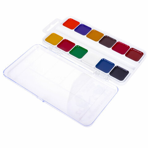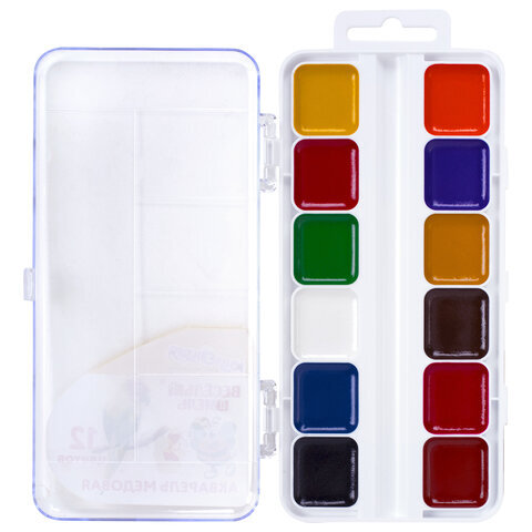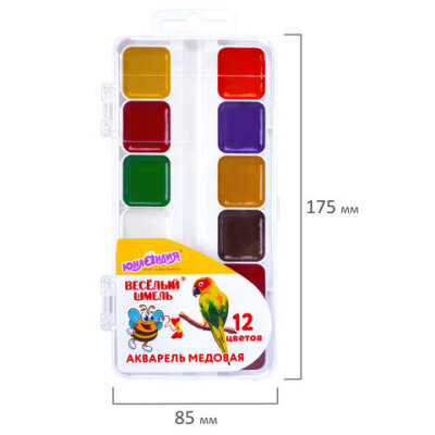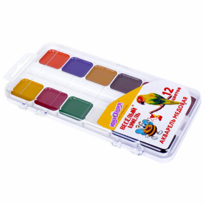 Краски акварельные ЮНЛАНДИЯ "ВЕСЁЛЫЙ ШМЕЛЬ", медовые, 12 цветов, квадратные кюветы, пластик, 192362