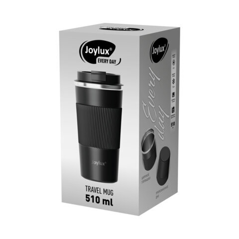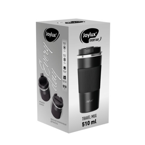 Термокружка 510 мл JOYLUX (ДЖОЙЛЮКС) EVERY DAY, нержавеющая сталь SUS304, силиконовый рукав, черный матовый, 700292